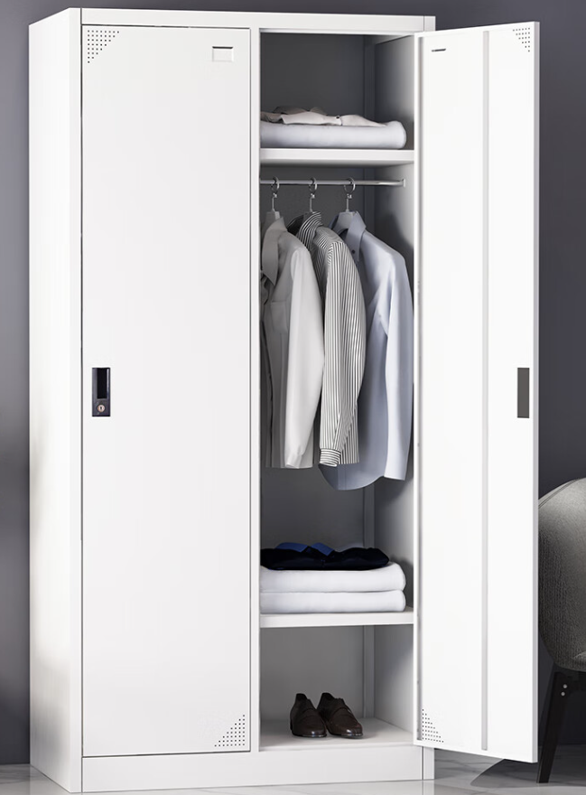 該產品用料標準全部選用采用上海寶鋼或同等品牌0.7mm厚一級冷軋鋼板,表面靜電噴塑處理,產品符合GB/T13668-2003標準。鋼板為0.7mm厚。采用八工位前處理,大型靜電噴涂流水線,扣手采用ABS工程塑料,采用鋅合金專用鎖具,門軸加裝耐磨塑料套,綠色環(huán)保、無毒無味、防蟲防潮。